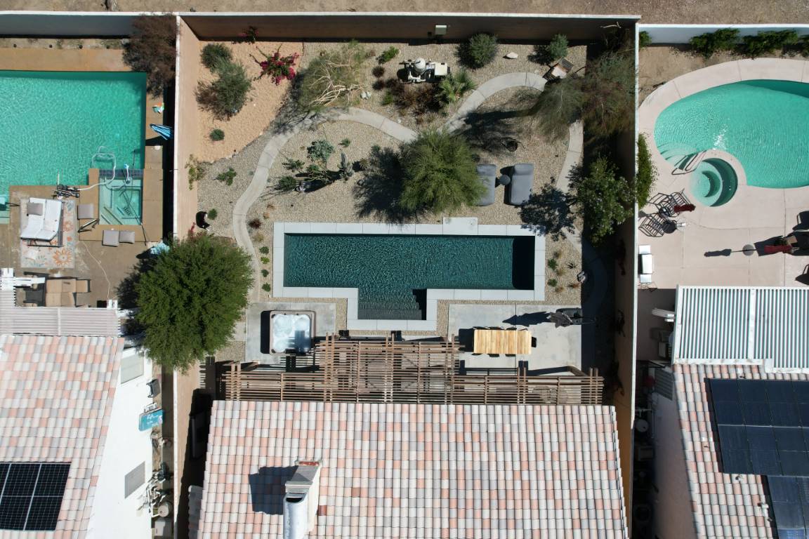 Subtle landscaping elements—low-profile greenery, ornamental grasses, and strategically placed planters—frame the pool with organic texture, softening the overall aesthetic without overwhelming it. The Avenida Estrada project is a study in balanced design—where modern lines meet natural elements to create a private sanctuary. It stands as a shining example of what’s possible when form and function come together in a well-executed residential pool.