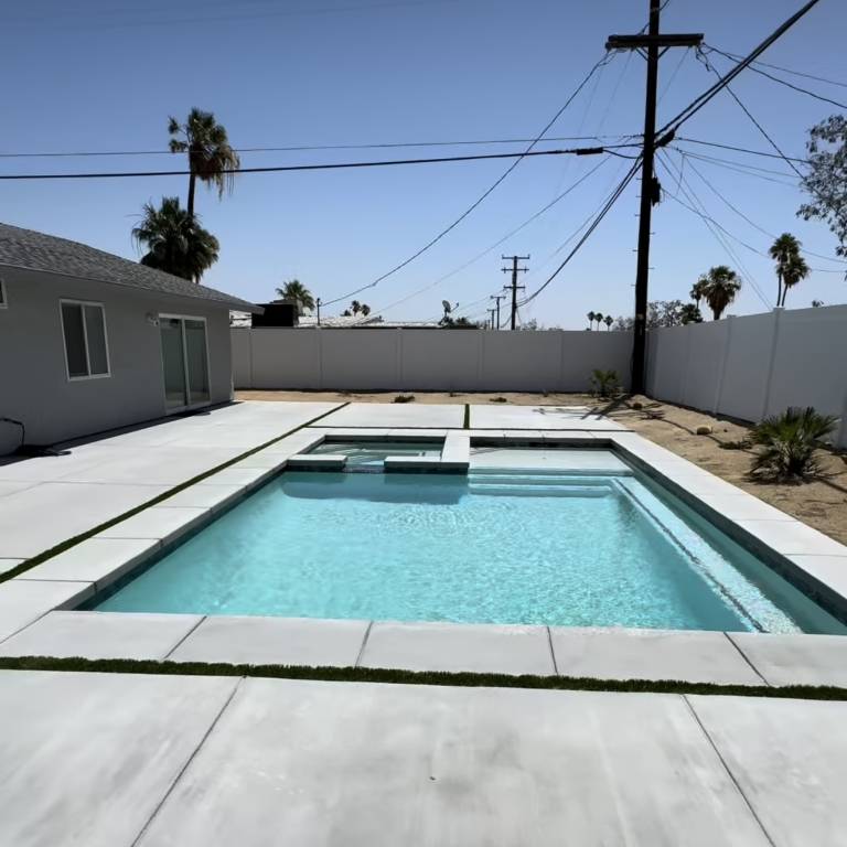 This residential pool project showcases the perfect balance of form and function, transforming an ordinary backyard into a private retreat. The pool’s sleek design is tailored to fit the space beautifully, with clean lines and finishes that enhance the overall aesthetic of the property. Its layout provides ample room for swimming, lounging, and family fun, making it an ideal spot for both relaxation and activity.